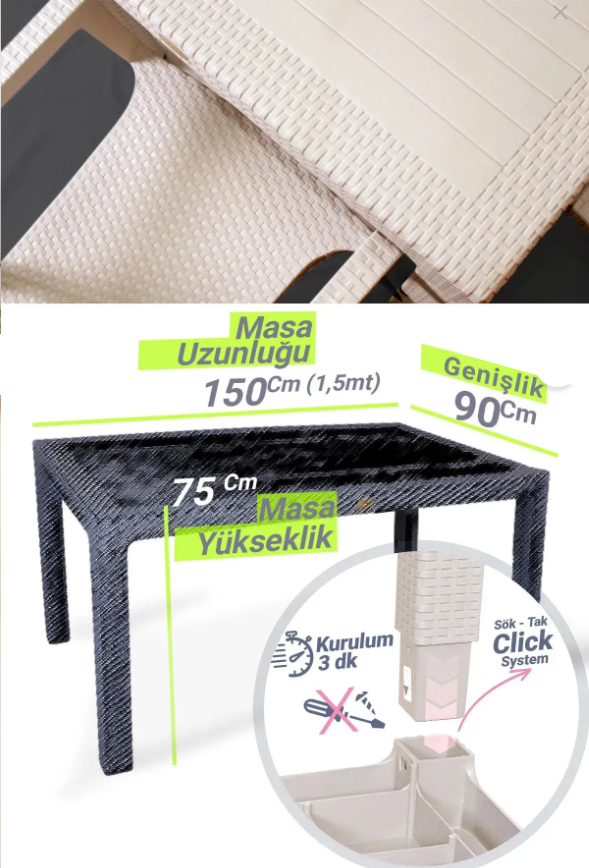 Masanın altında 1,5 metrelik 2 adet demir profil bulunmaktadır.